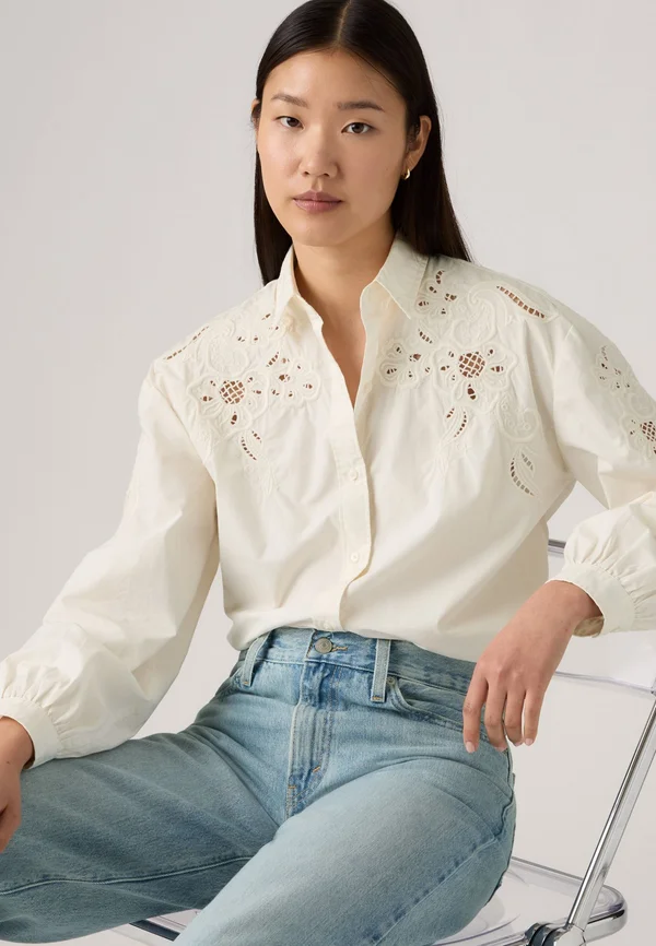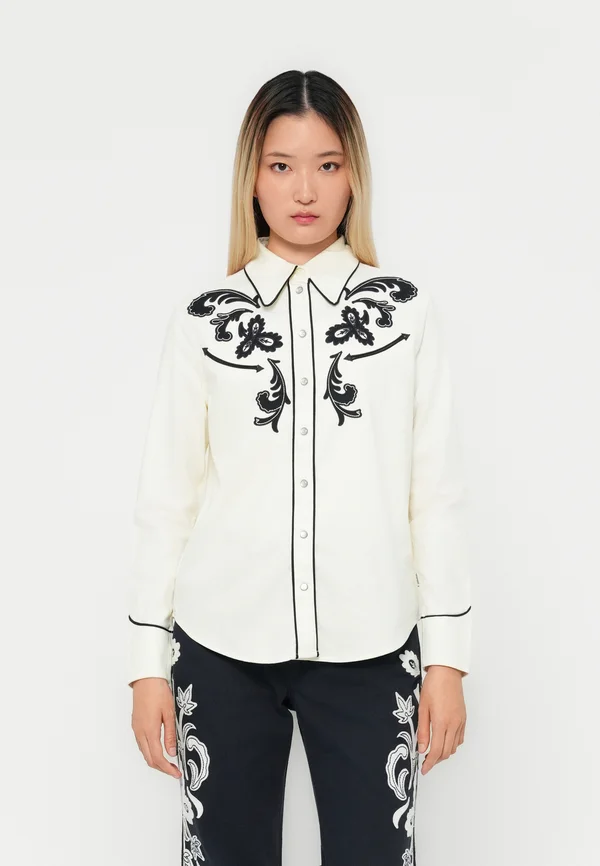 Button-down blouse - black/red/off white